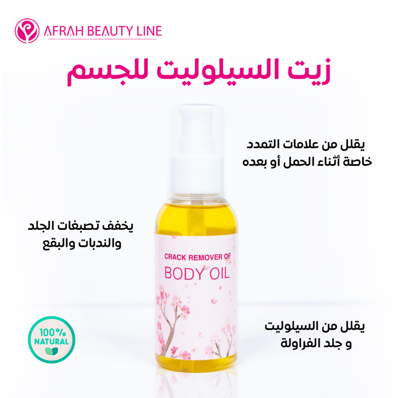زيت الجسم من أفراح بيوتي لاين يخفف من عيوب البشرة ويقلل من علامات التمدد الناتجة عن الحمل وفقدان الوزن.